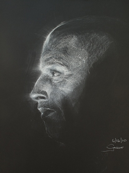 Most art schools start teaching students to draw on white paper with a black pencil, unfortunately my mind resisted from the start, and over time I switched completely to draw with white pencil on black paper. I found it to be much more efficient, to seek and place the "visual light" of the subject on the paper. I focus my drawings (and painting) on the light source qualities - the intensity, angle and the effects of reflective light on the subject.